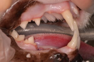 麻酔をかけた状態で、歯科レントゲン撮影を行い表からは見えない歯の根や歯の内部に異常がないかまで確認します。また、歯を1本ずつ触り歯周病によって歯周ポケットができていないか、出血がないかなども確認します。
