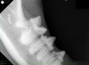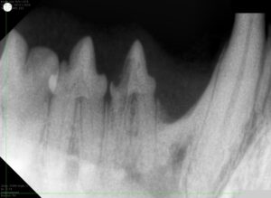 歯科レントゲンにより、溶けている歯は1本だけであり歯根と顎の骨の癒着も少ないことがわかりました。