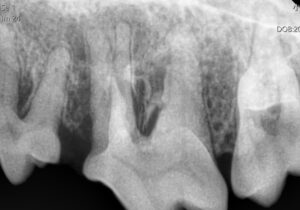 本症例で歯を温存するためには抜髄根幹治療を行った上に、歯周外科などによる歯周病治療が必要になります。