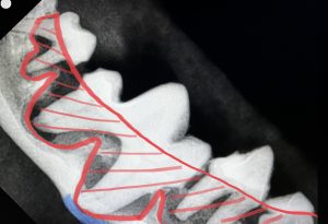 赤で示した部分はもともと歯を支える組織があった部分です。