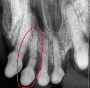 レントゲンでは歯が折れている様子がはっきりと分かります。